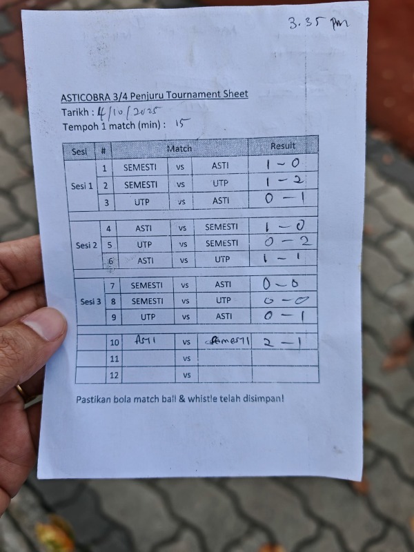 Kepada semua pemain, terima kasih kerana sudi hadir. Kepada pemain SEMESTI terbaik sesi Oktober 2025, Adam. Semoga teruskan usaha untuk terus perform!